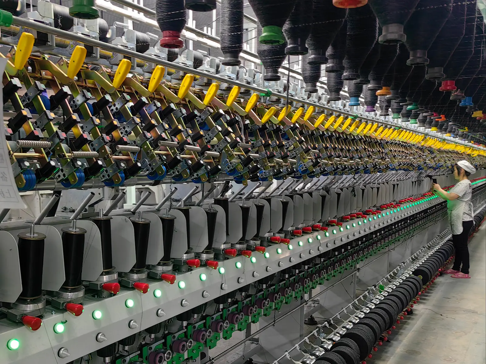 The machine adopts a single-color roving feeding system, ensuring stable and efficient fancy yarn production. Equipped with fluted tube winding and composite spindle technology, it guarantees smooth yarn formation and high consistency. Each spindle is independently servo-driven, allowing precise control of speed and tension. With a PLC-based control system and touchscreen panel, operators can easily set process parameters, store recipes, and switch production quickly to meet diverse yarn requirements.